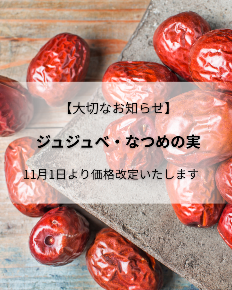 誠に心苦しいのですが「ジュジュベ・なつめの実」の価格を改定させていただくこととなりました。